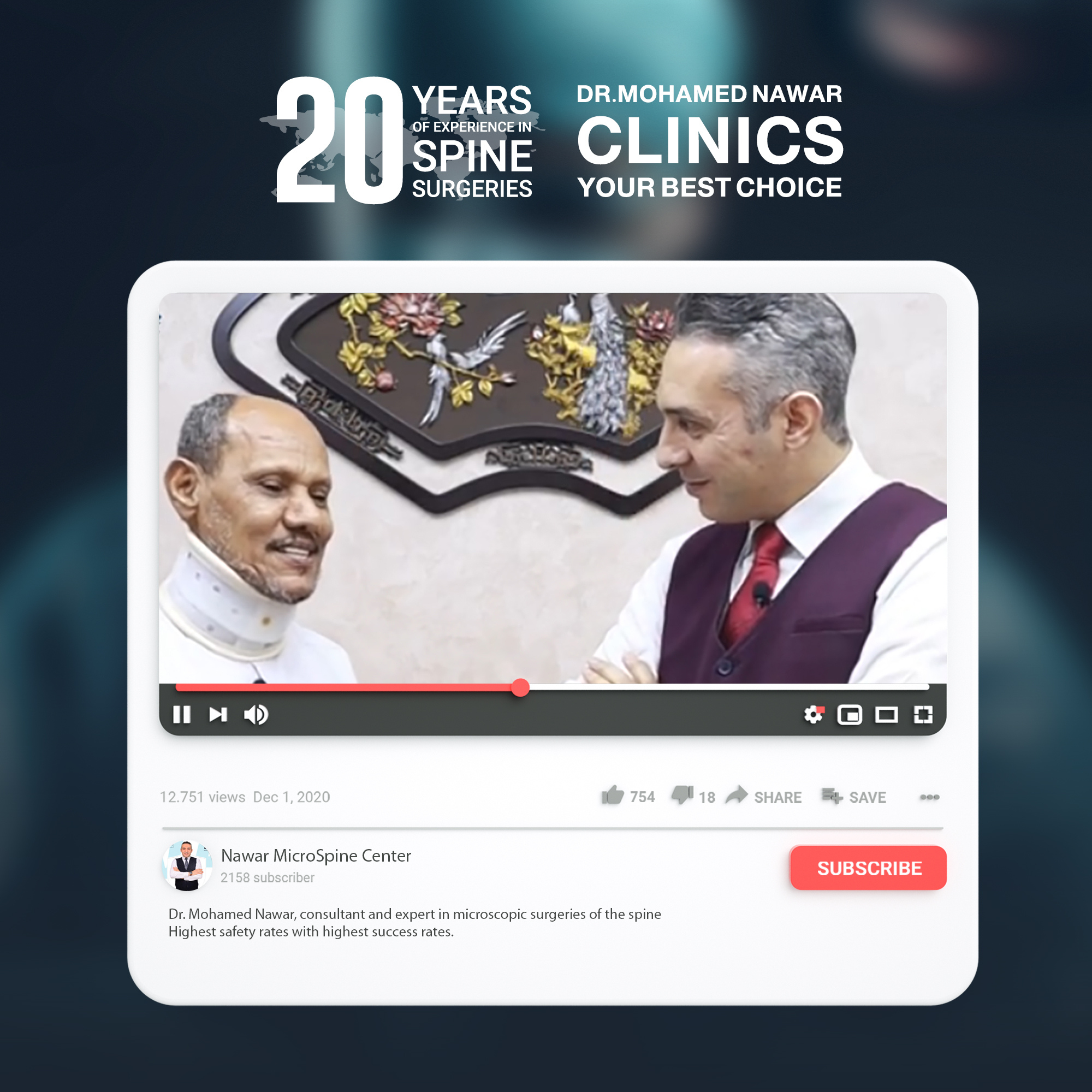 Since 2016, I had been suffering severely from a herniated disc, with unbearable pain. Until I finally came to Dr. Mohamed Nawar, who performed microscopic disc removal surgery. By God’s grace, I improved tremendously afterwards — the pain disappeared completely, and now I’m living a normal life again. Thank you so much Dr. Mohamed Nawar, may God reward you abundantly.